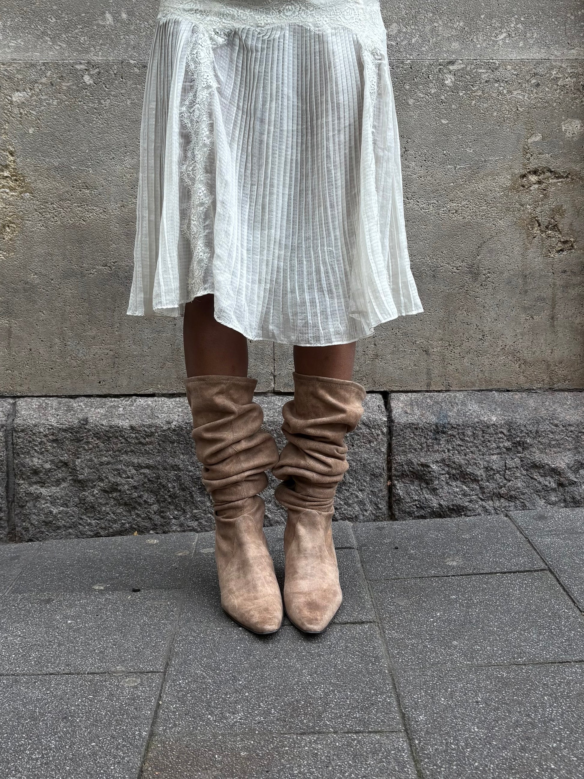 Beige knee high boot,