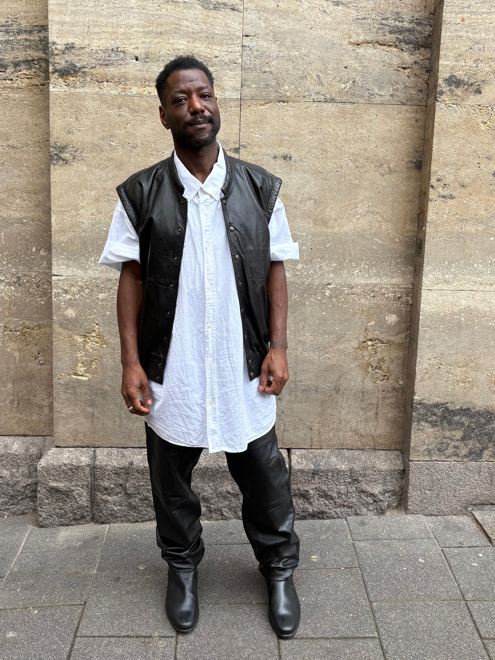 Black leather vest,